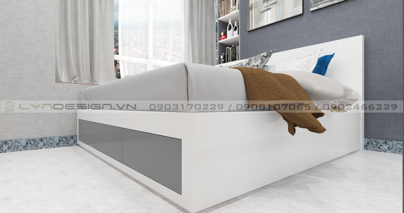 Thiết kế nội thất phòng ngủ hiện đại vẫn sử dụng 2 tone màu chủ đạo là màu xám và trắng nhẹ nhàng kết hợp với các thiết kế với đường nét hiện đại, không đi sâu vào nhấn mạnh các đường cong hay các thiết kế cầu kỳ, kiểu cách.