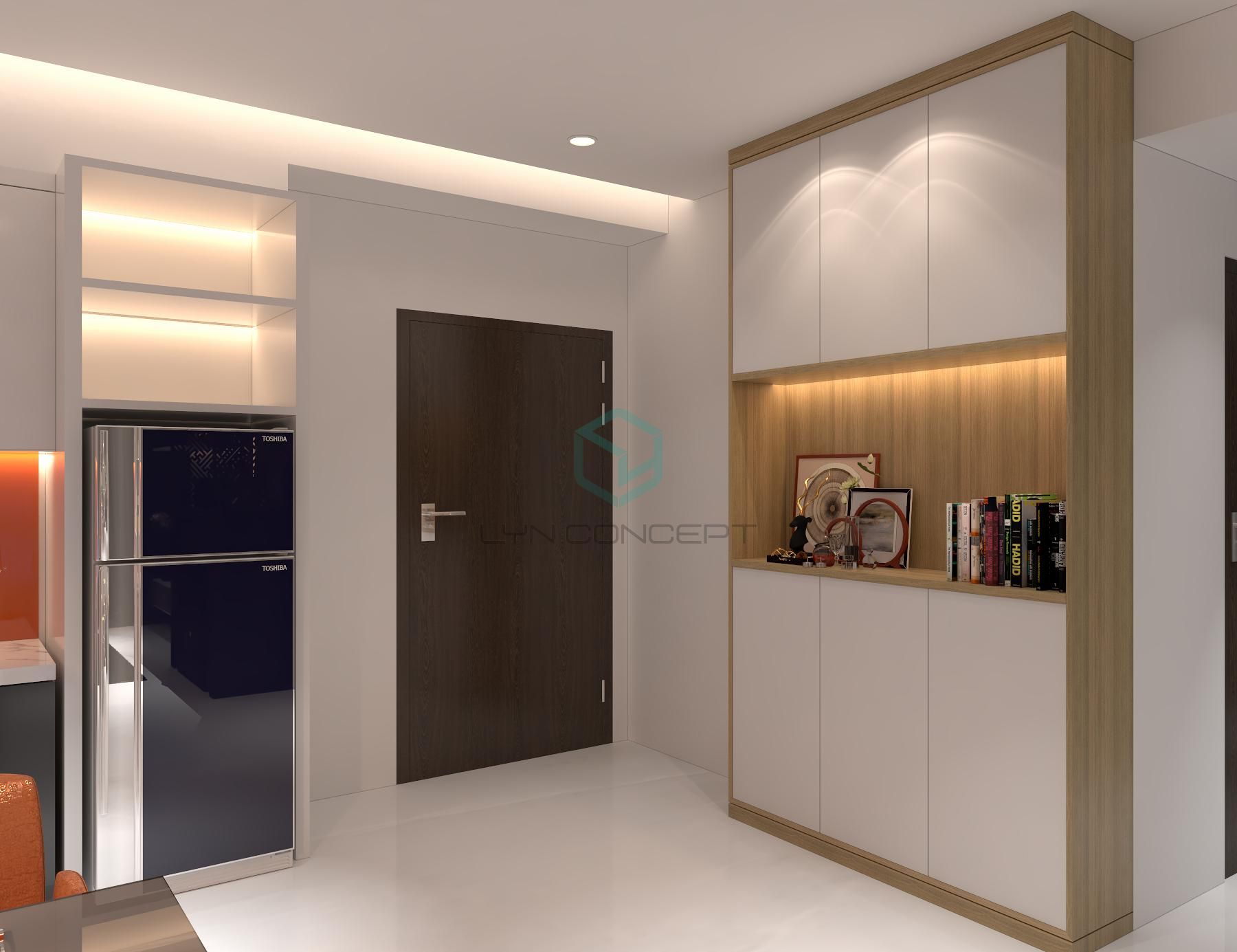 Phía còn lại là tủ giày full trần, kệ trang trí tiện nghi cho gia đình sử dụng.