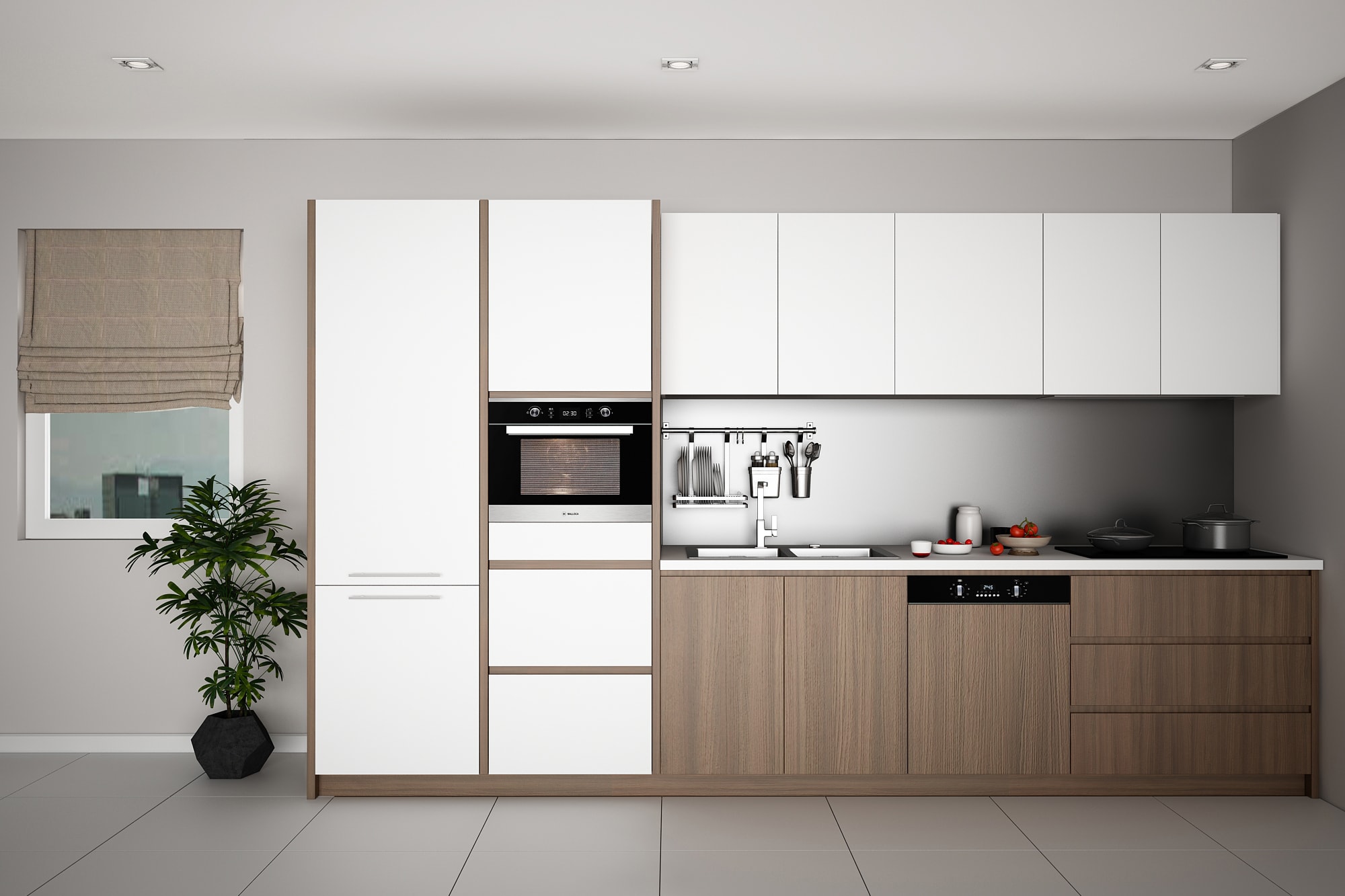 - Giá để dao thớt, kệ gia vị, khay úp chén, giá để xoong nồi, tủ đồ khô chưa bao gồm