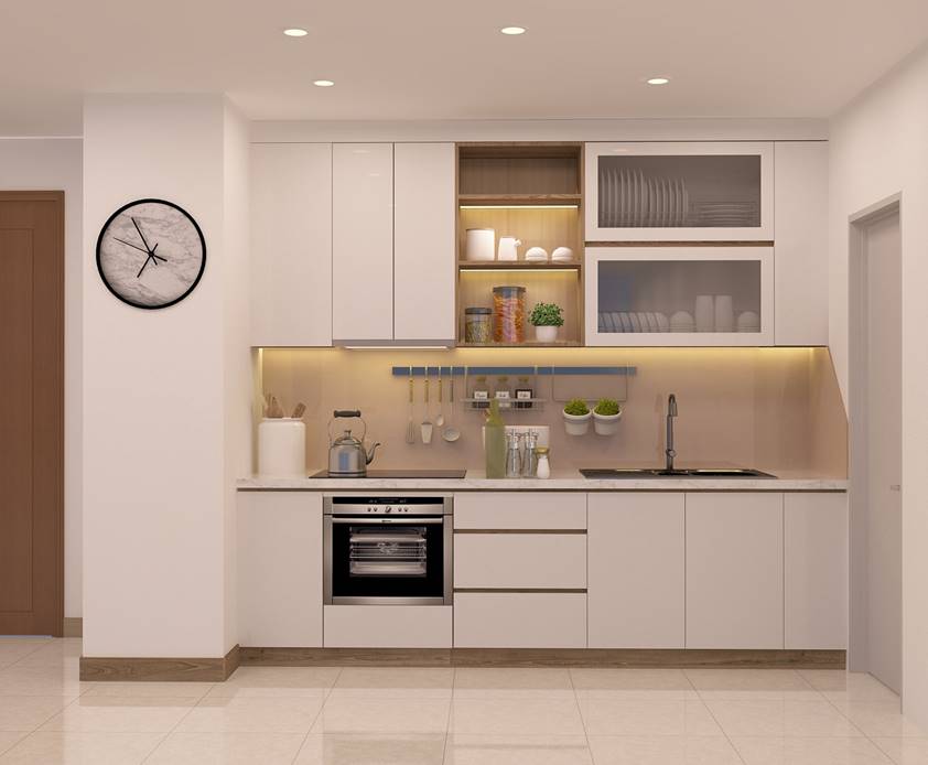 - Giá để dao thớt, kệ gia vị, khay úp chén, giá để xoong nồi, tủ đồ khô chưa bao gồm