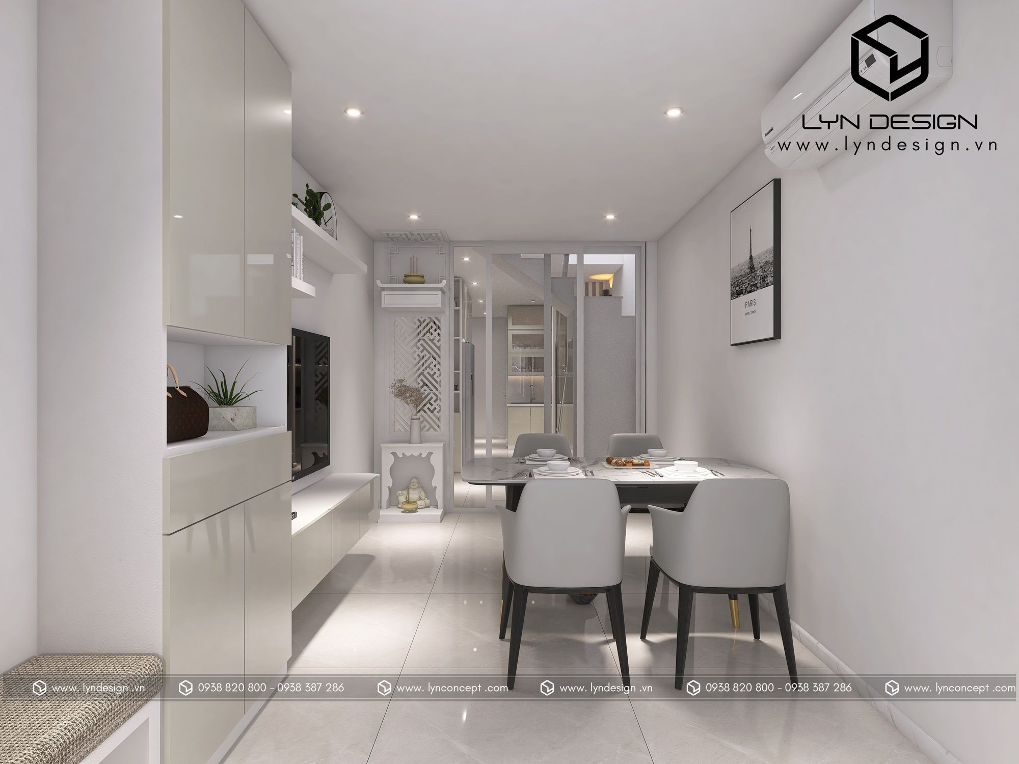 Nhà phố 1 trệt 1 lầu này được LYN Design thiết kế theo phong cách hiện đại với ưu điểm là vẫn có độ thẩm mỹ nhất định nhưng không rườm rà, nhiều chi tiết. Không gian đẹp từ cách cách bố trí trong không gian, thể hiện tinh thần hiện đại tiện nghi nhưng vẫn tối giản. Trong thiết kế này LYN Design đã chọn phương án thay vì tập trung quá nhiều vào trang trí thì sẽ chú trọng đến bố cục và chọn nội thất phù hợp với không gian nhằm tối ưu công năng cho toàn bộ căn nhà. Để thấy rõ sự tinh tế trong thiết kế nội thất mà LYN Design mang đến cho bạn xin mời các bạn cùng tham khảo mẫu nhà phố 1 trệt 1 lầu Quận 4 dưới đây nhé!!!!