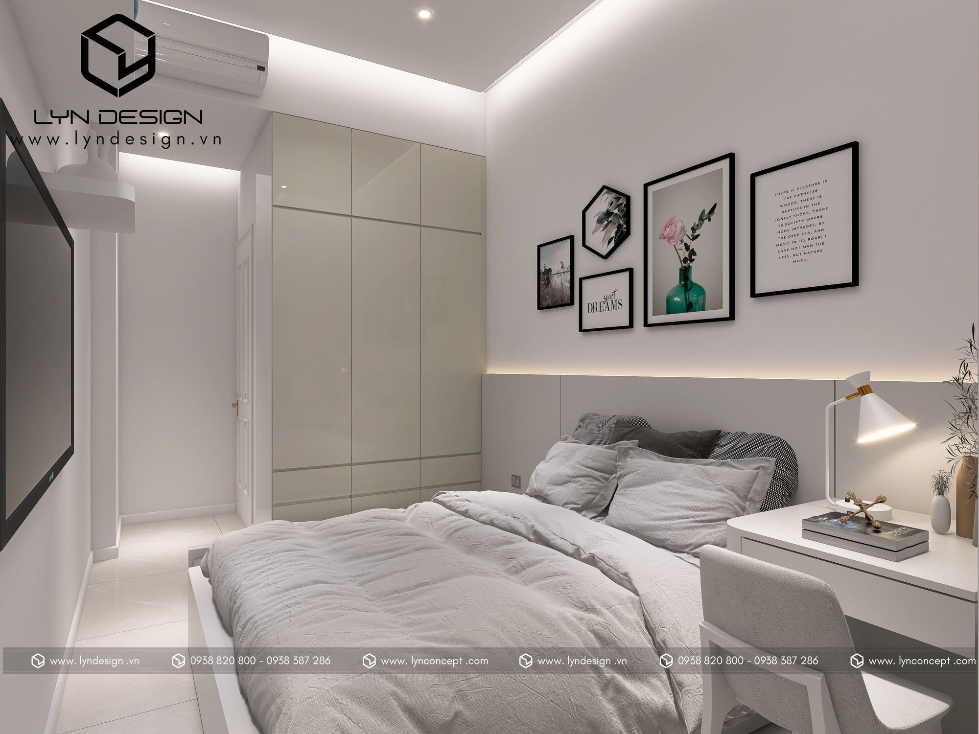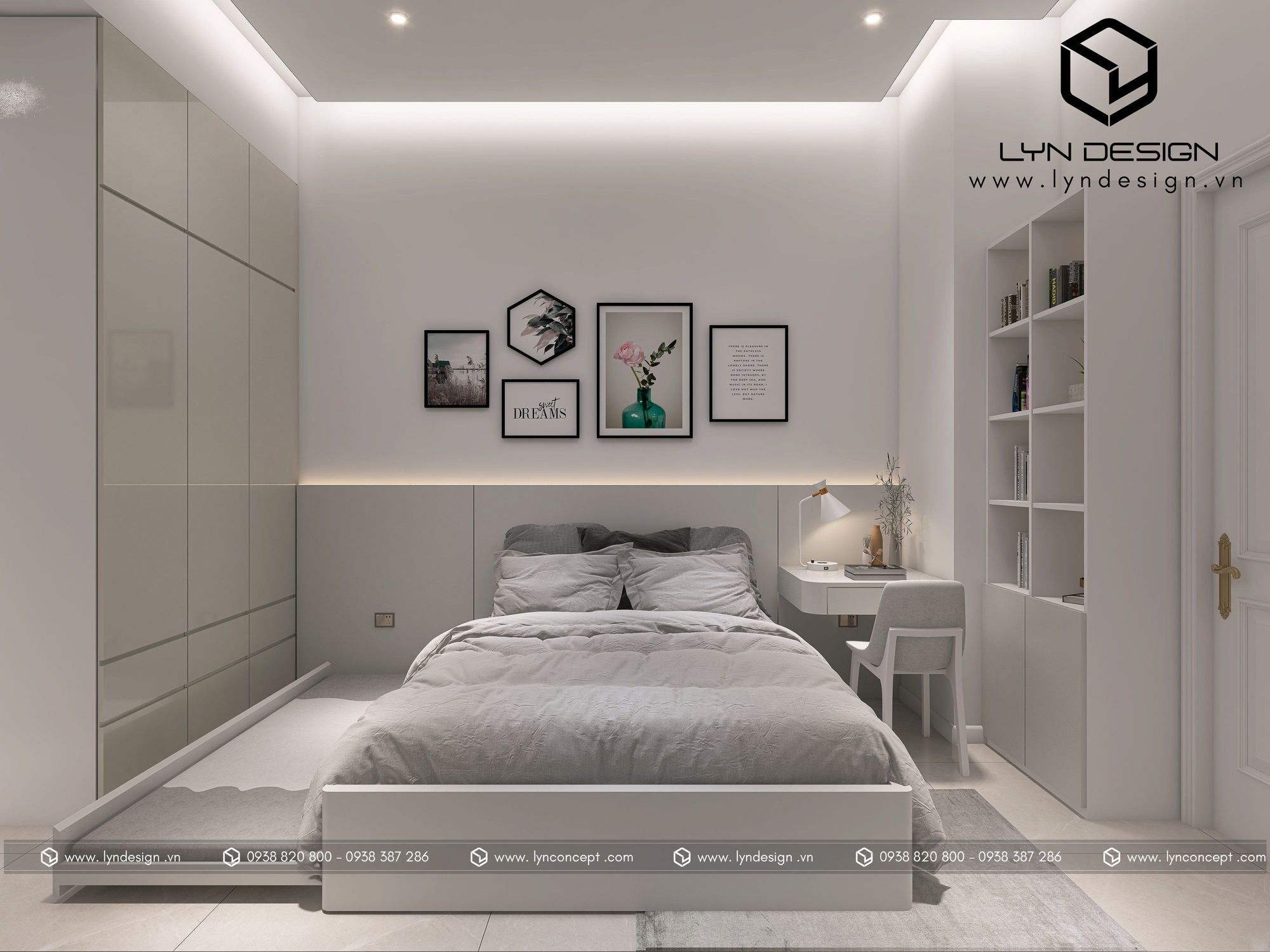 Phòng ngủ Master được thiết kế đơn giản bằng việc sử dụng các gam màu trung tính, các tông màu này đều có đặc điểm mang lại hiệu ứng cảm xúc tích cực cho không gian, giúp gia chủ cảm thấy ấm áp và an toàn.Những chi tiết nhỏ được các kiến trúc sư thiết kế nội thất tạo điểm nhấn như đèn ngủ mang nét trẻ trung, lạ và sáng tạo… tạo một không gian không hề nhàm chán cho gia chủ.