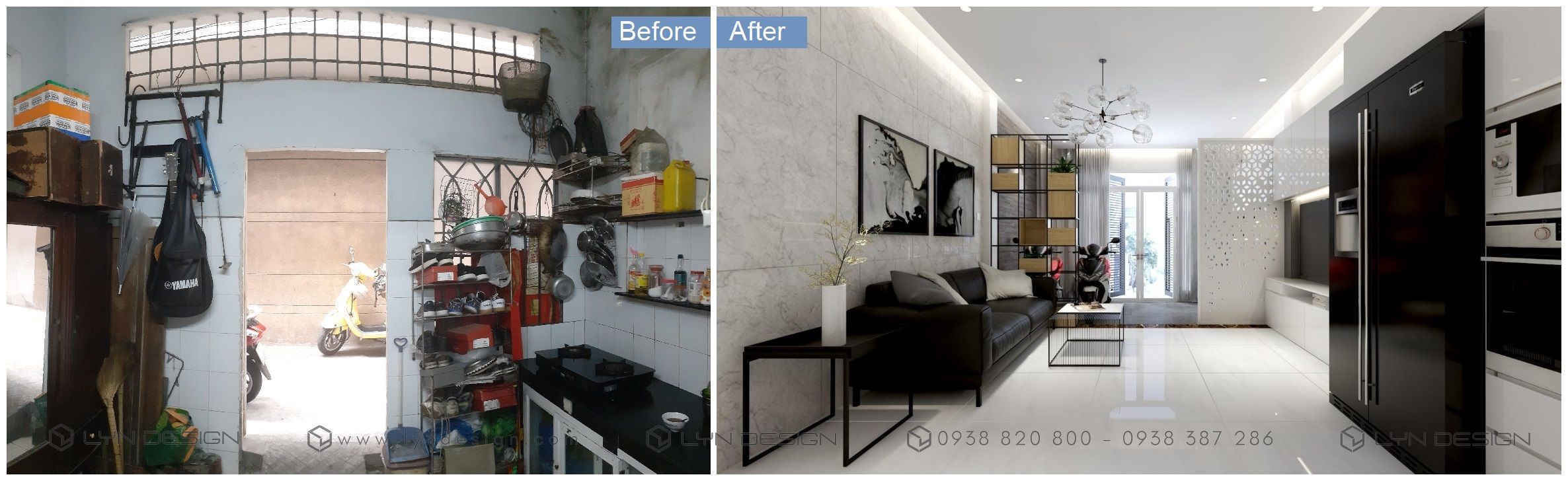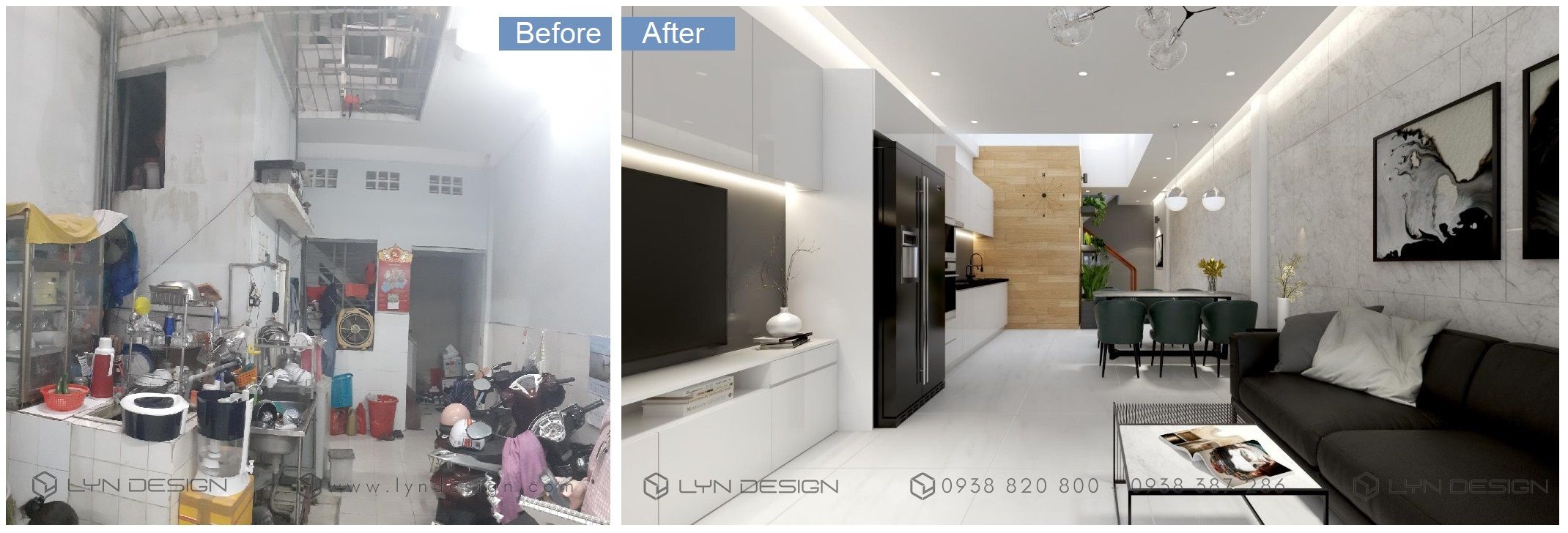 SO SÁNH TRƯỚC VÀ SAU KHI THIẾT KẾ CẢI TẠO NỘI THẤT NHÀ PHỐ CMT8