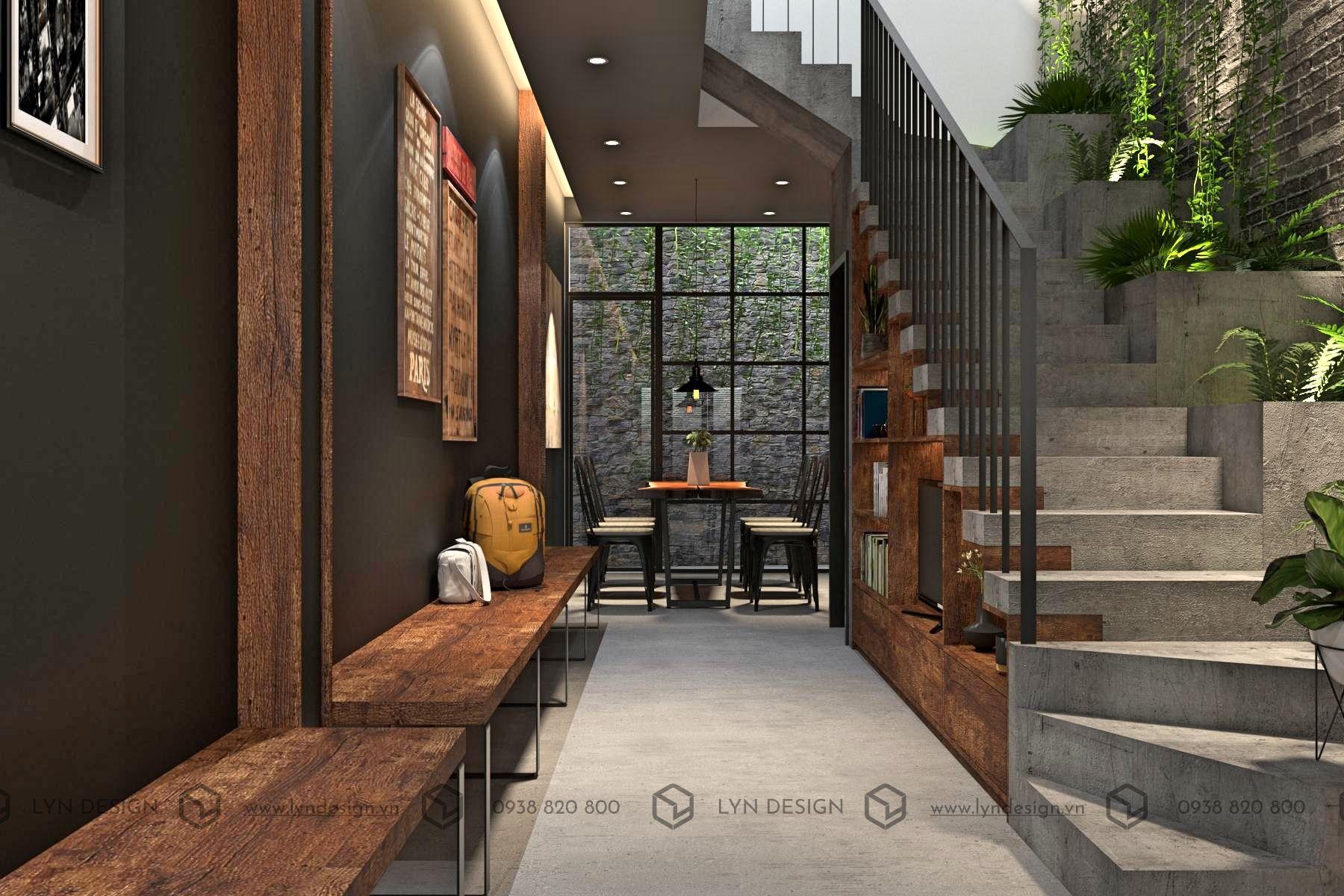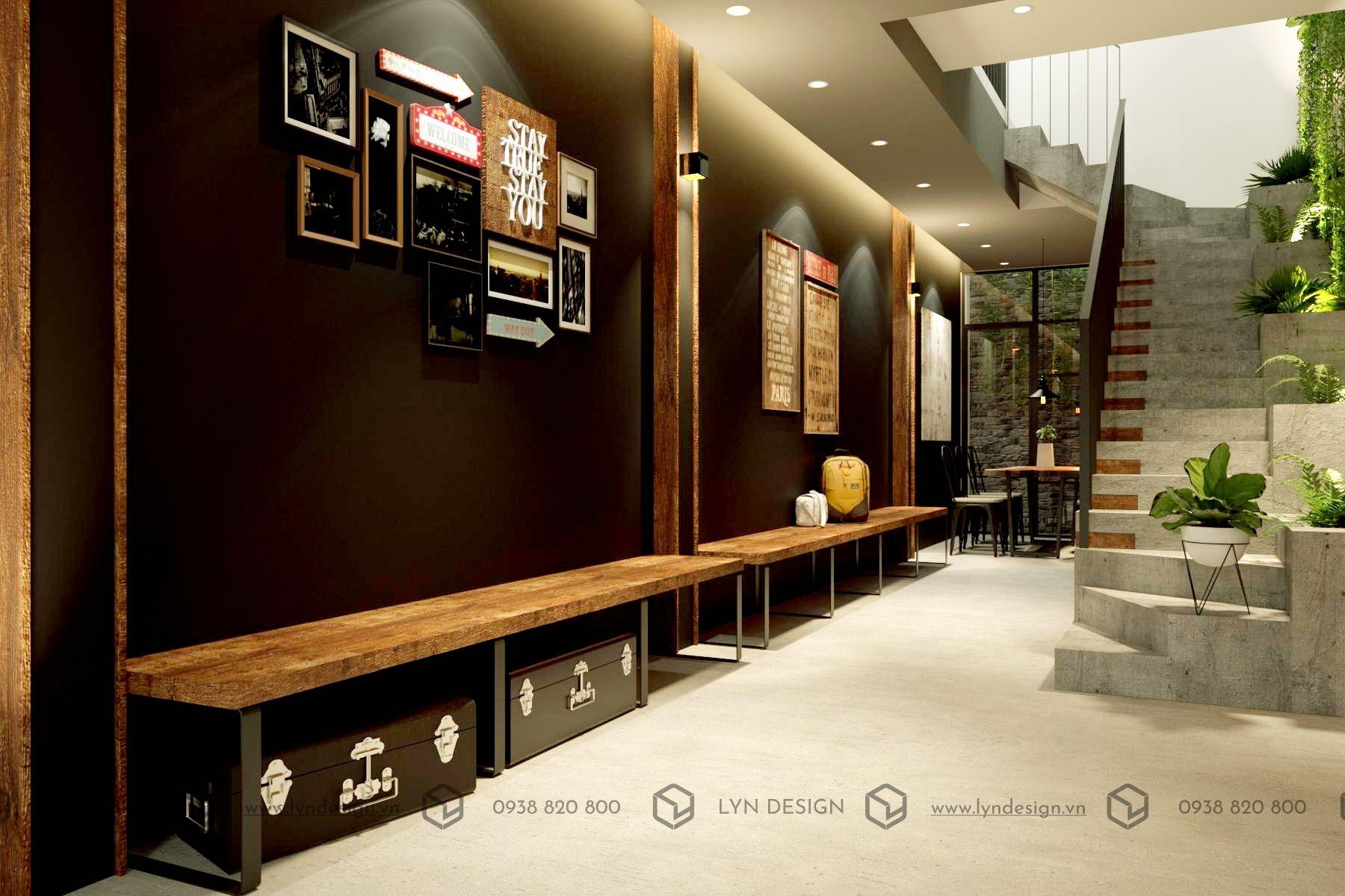 Để homestay thật nổi bật trong hàng trăm homestay đang cho thuê xung quanh cần có những thiết kế thật phá cách, chỉ cần sử dụng chất liệu sơn tường xi măng thô mộc độc đáo nhấn thêm một mảng tường decor ốp gỗ trang trí đã có thể tạo ấn tượng lớn cho không gian tầng trệt của homestay.