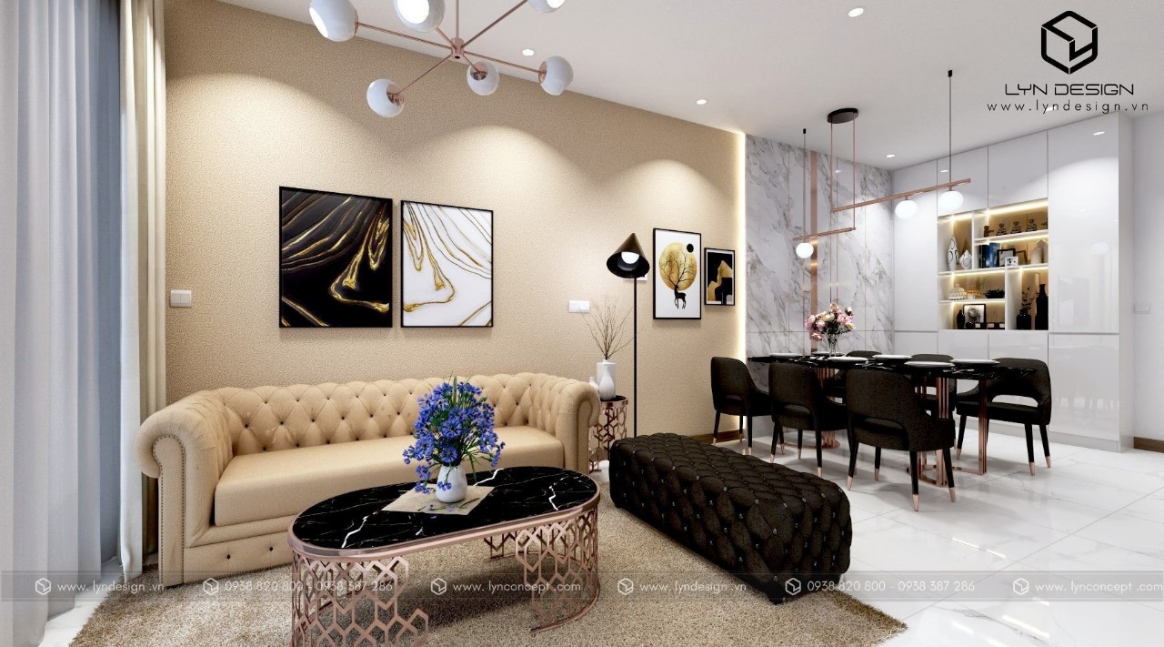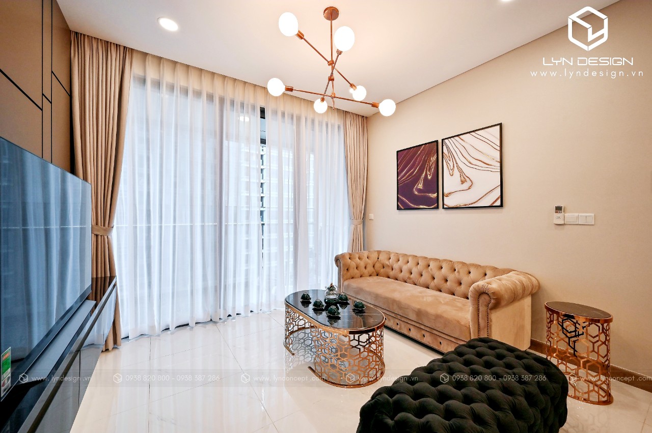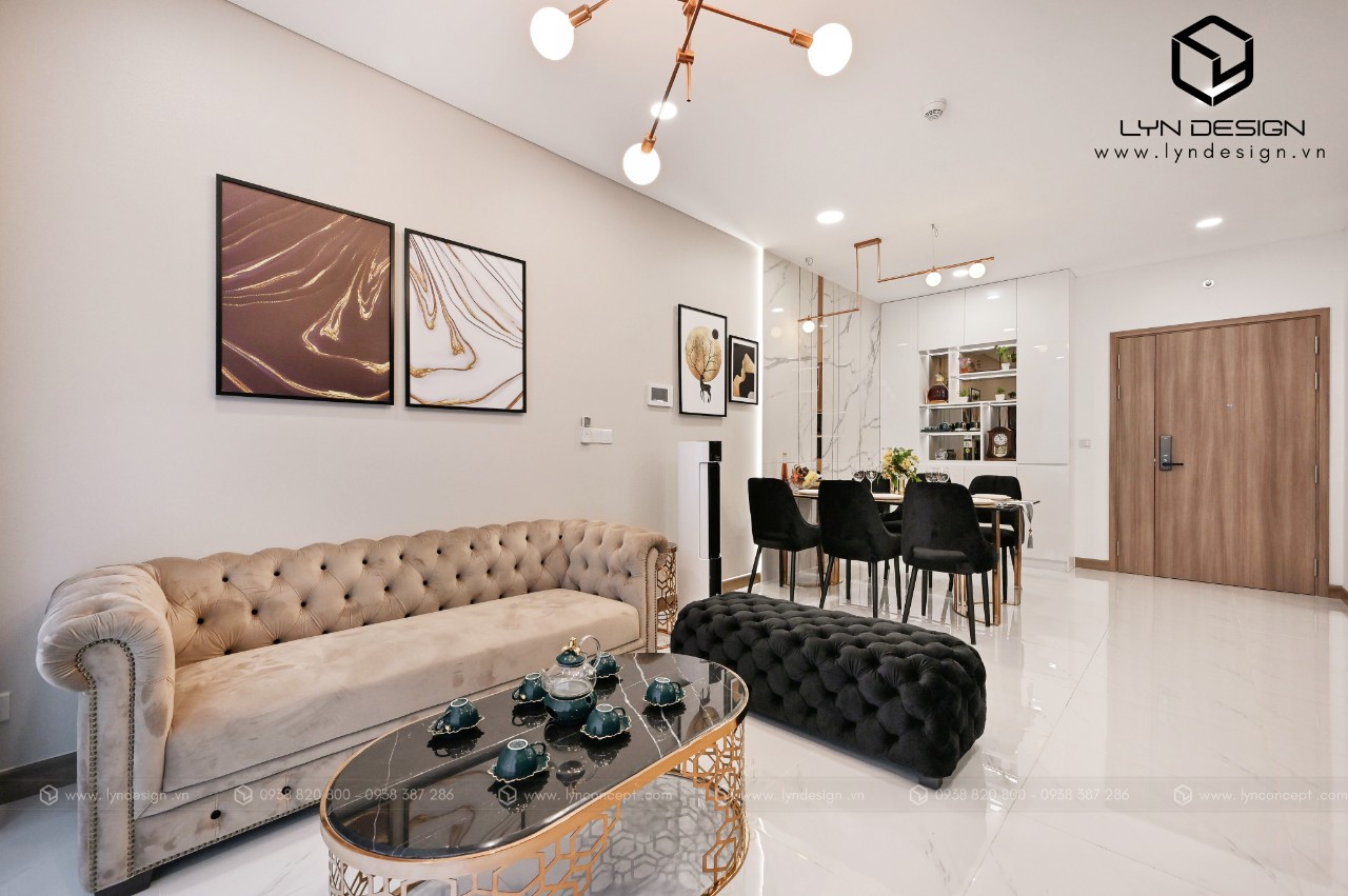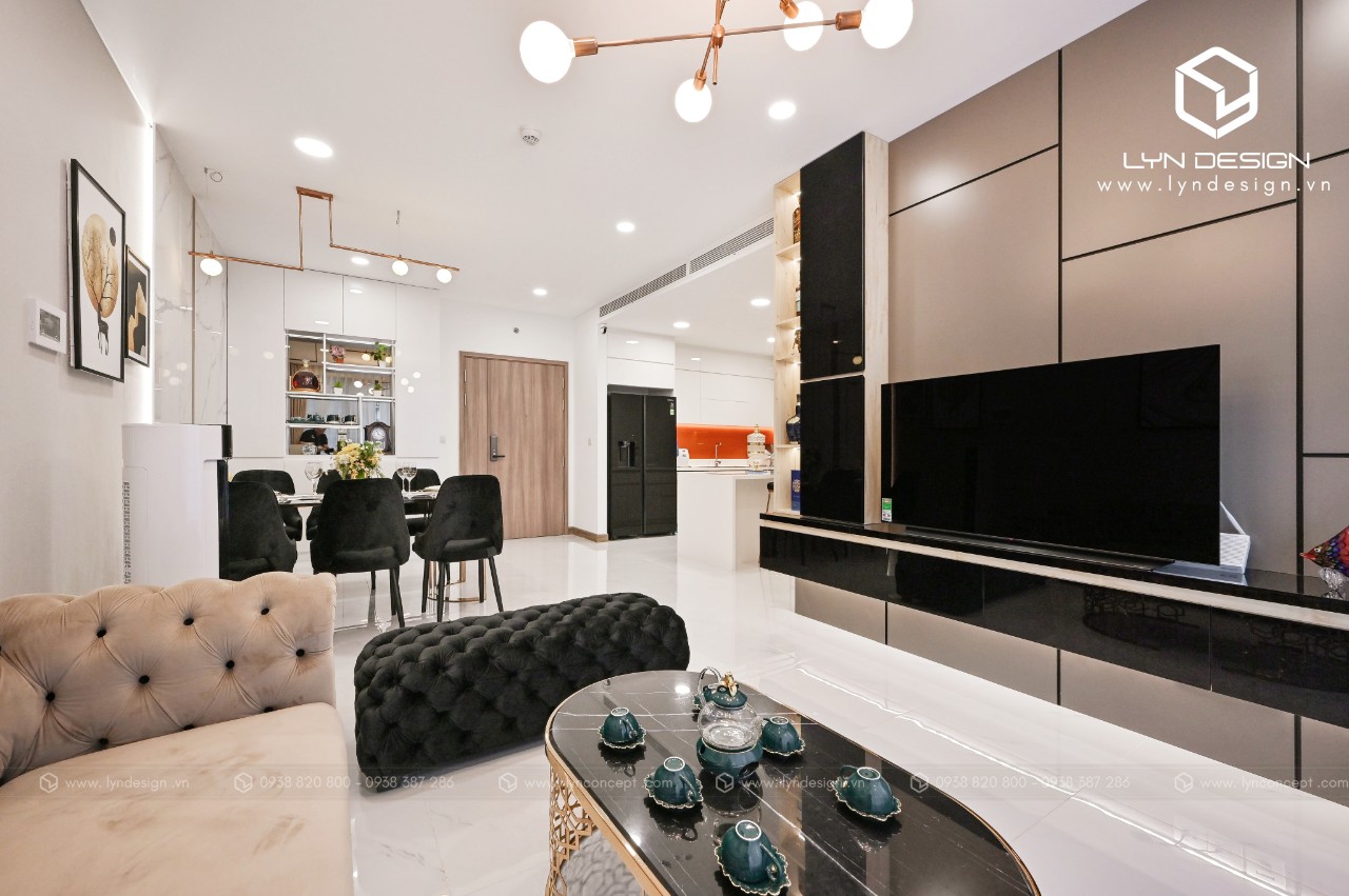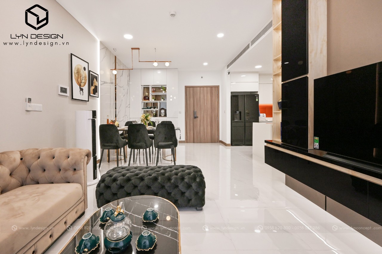 Trong căn hộ này, LYN Design vận dụng phong cách hiện đại bằng những đường thẳng tắp hài hòa với tông màu kem sang trọng. Bộ ghế sofa cùng tông màu tô thêm vẻ thanh lịch và cao cấp của căn hộ. Hơn nữa, ý tưởng thiết kế là điều chúng tôi luôn bận tâm. Nó phải thể hiện được phần nào tâm hồn và cá tính của gia chủ thì không gian tổ ấm này mới xứng đáng.