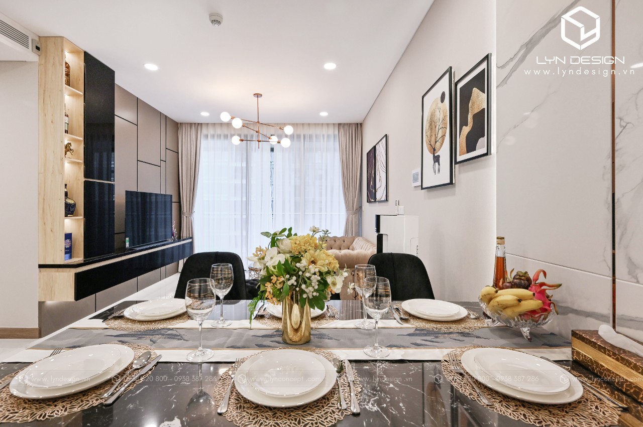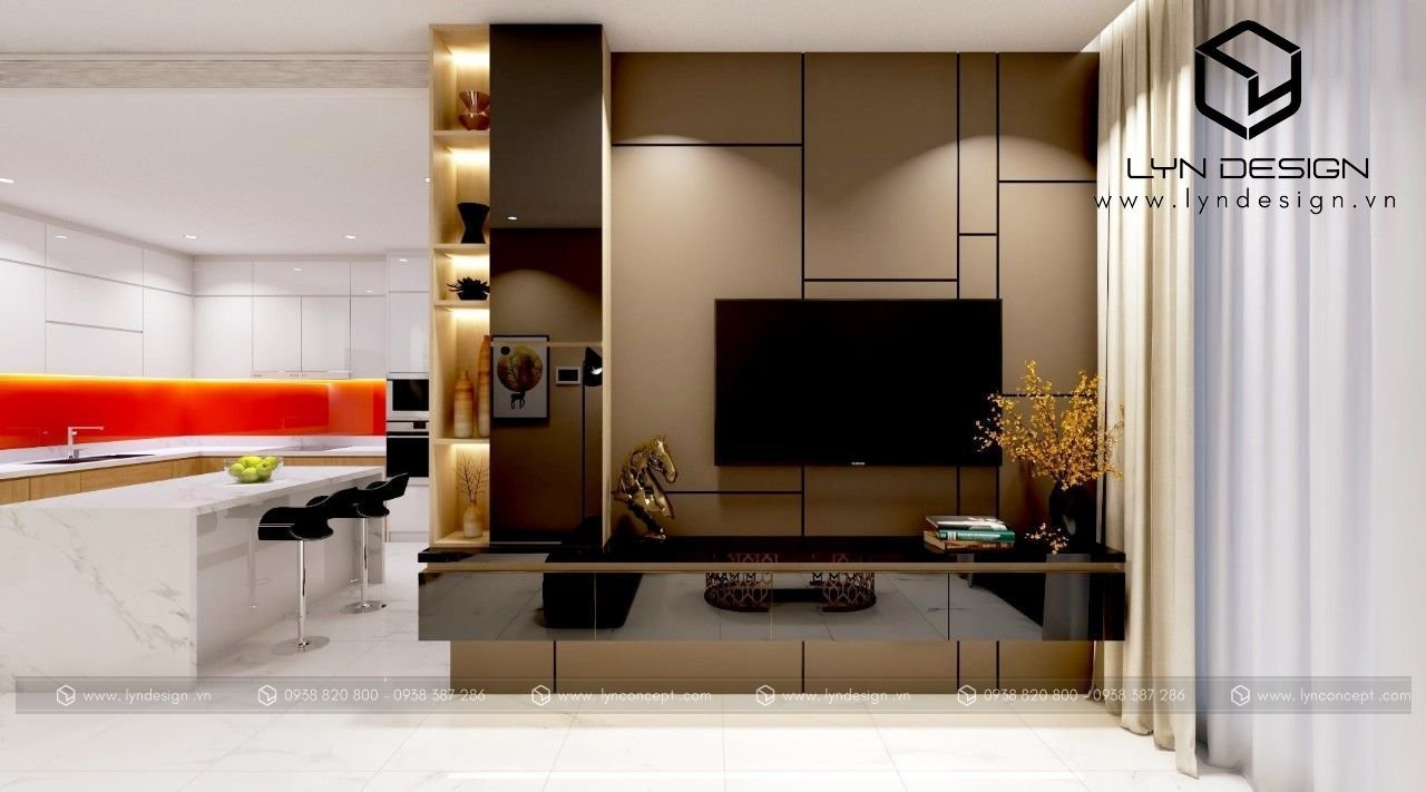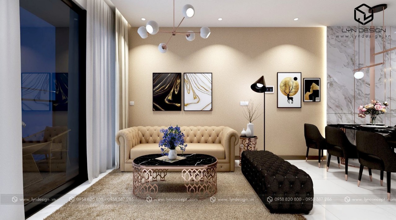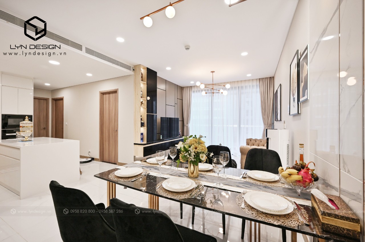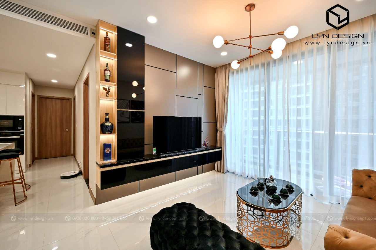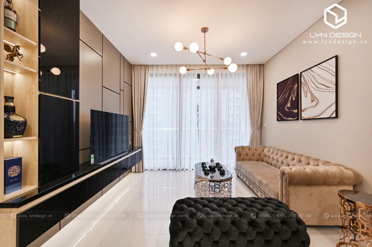 Trong căn hộ này, LYN Design vận dụng phong cách hiện đại bằng những đường thẳng tắp hài hòa với tông màu kem sang trọng. Bộ ghế sofa cùng tông màu tô thêm vẻ thanh lịch và cao cấp của căn hộ. Hơn nữa, ý tưởng thiết kế là điều chúng tôi luôn bận tâm. Nó phải thể hiện được phần nào tâm hồn và cá tính của gia chủ thì không gian tổ ấm này mới xứng đáng.