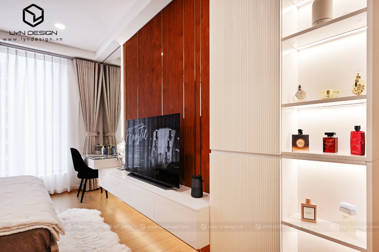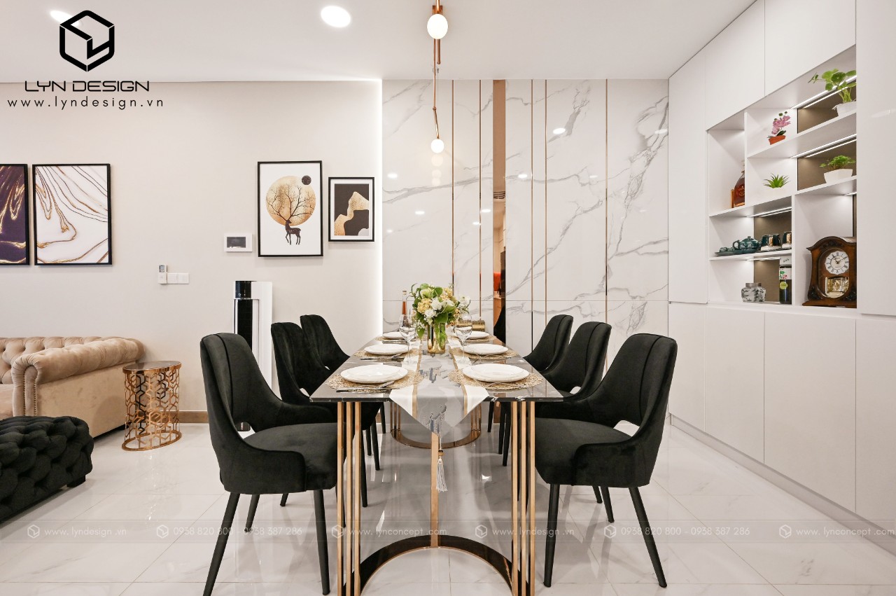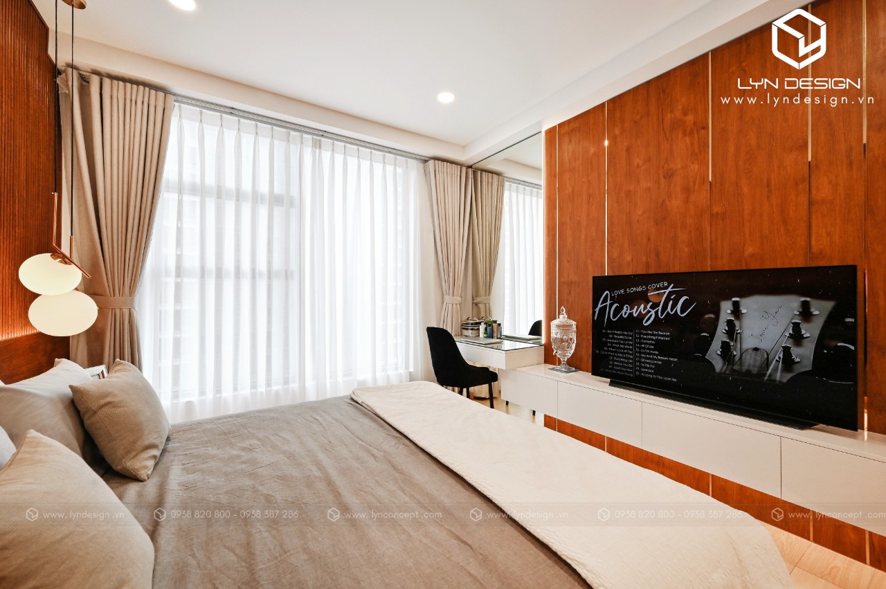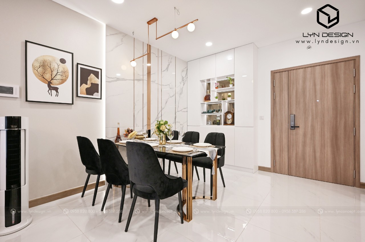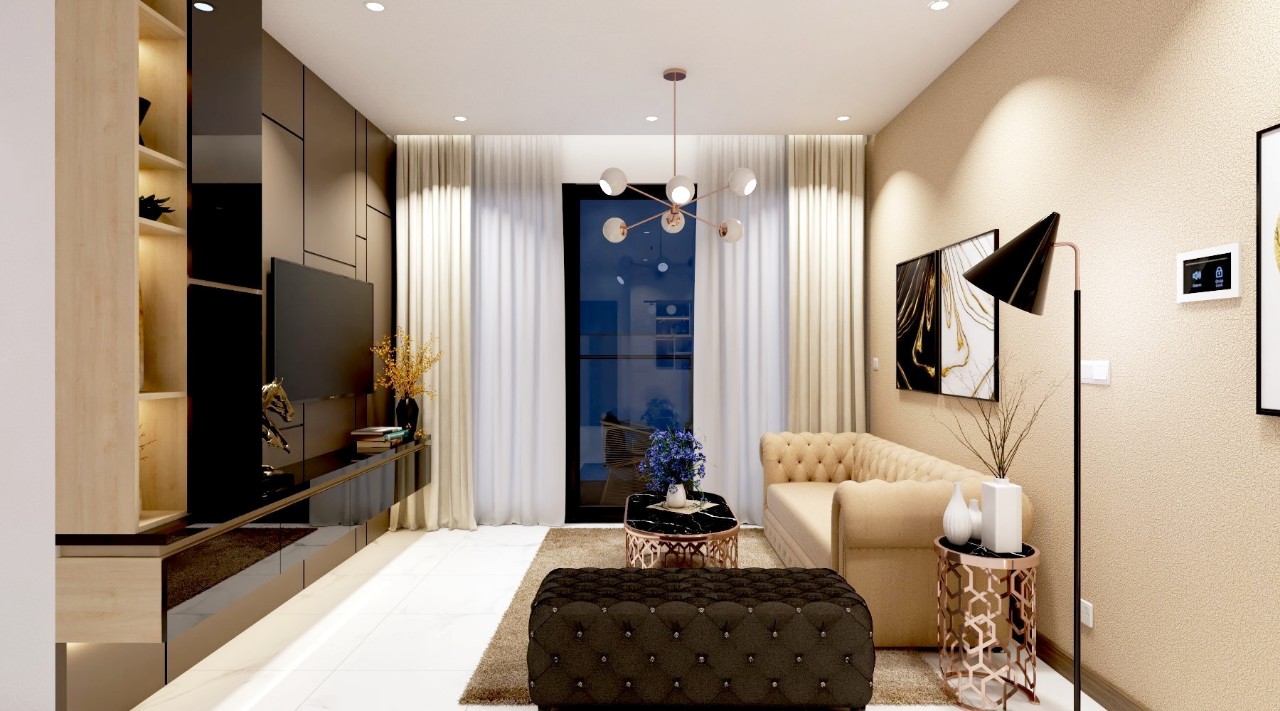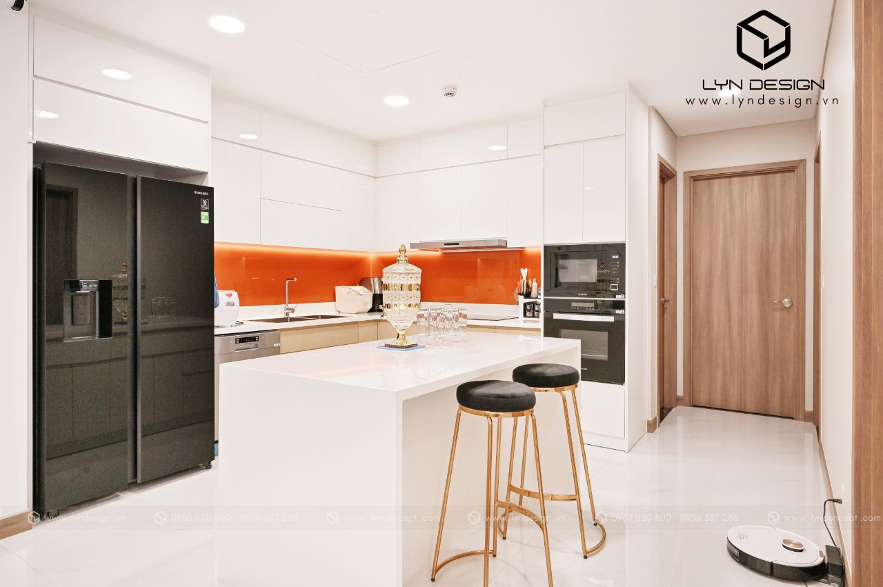 Trong căn hộ này, LYN Design vận dụng phong cách hiện đại bằng những đường thẳng tắp hài hòa với tông màu kem sang trọng. Bộ ghế sofa cùng tông màu tô thêm vẻ thanh lịch và cao cấp của căn hộ. Hơn nữa, ý tưởng thiết kế là điều chúng tôi luôn bận tâm. Nó phải thể hiện được phần nào tâm hồn và cá tính của gia chủ thì không gian tổ ấm này mới xứng đáng.