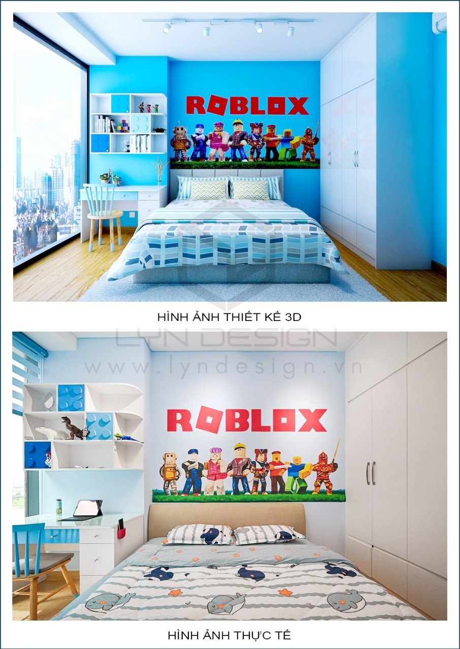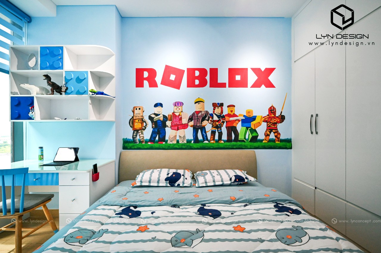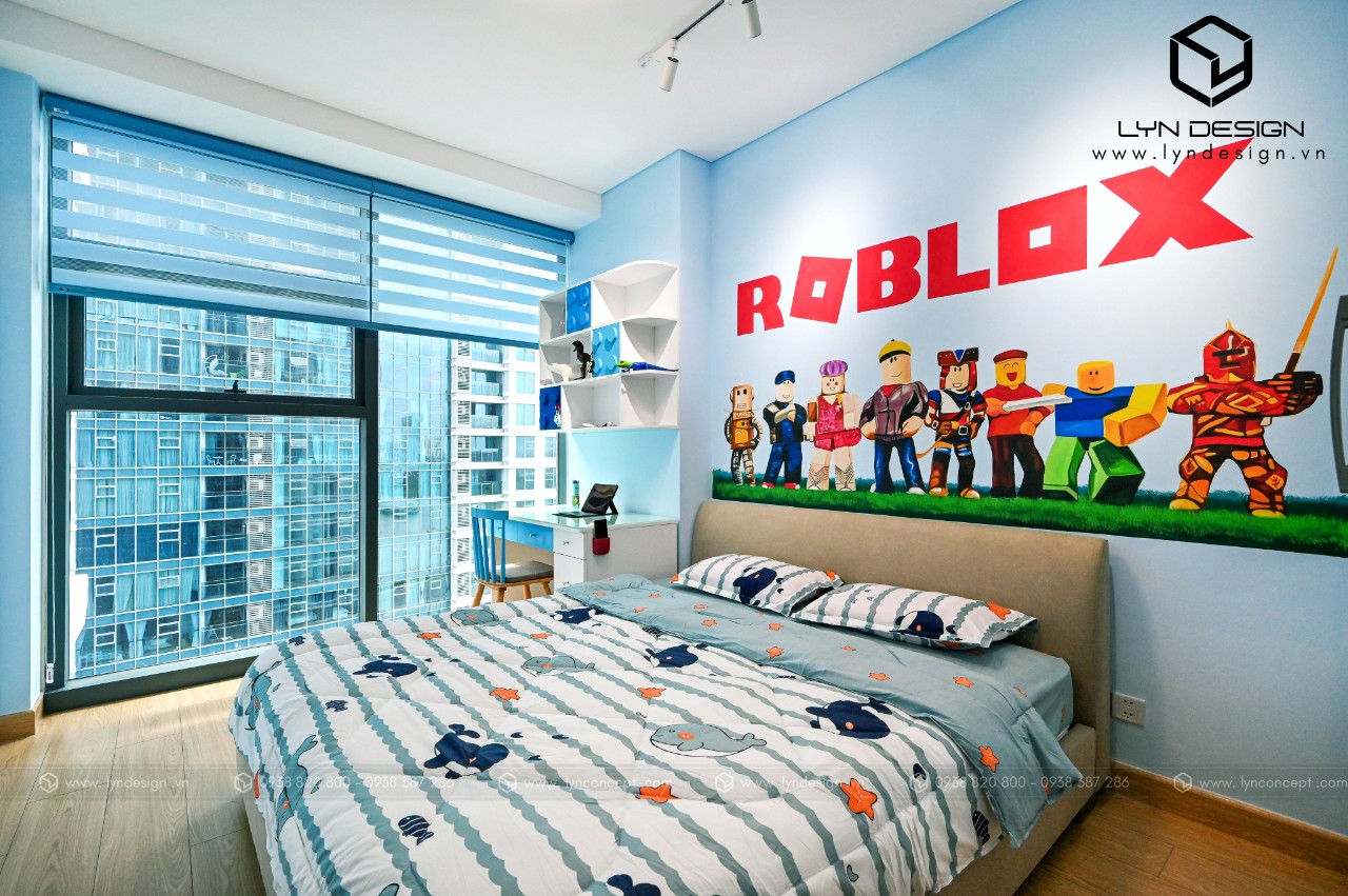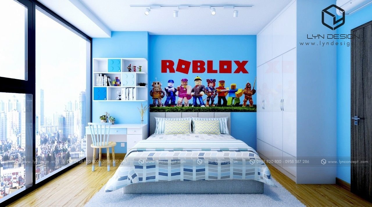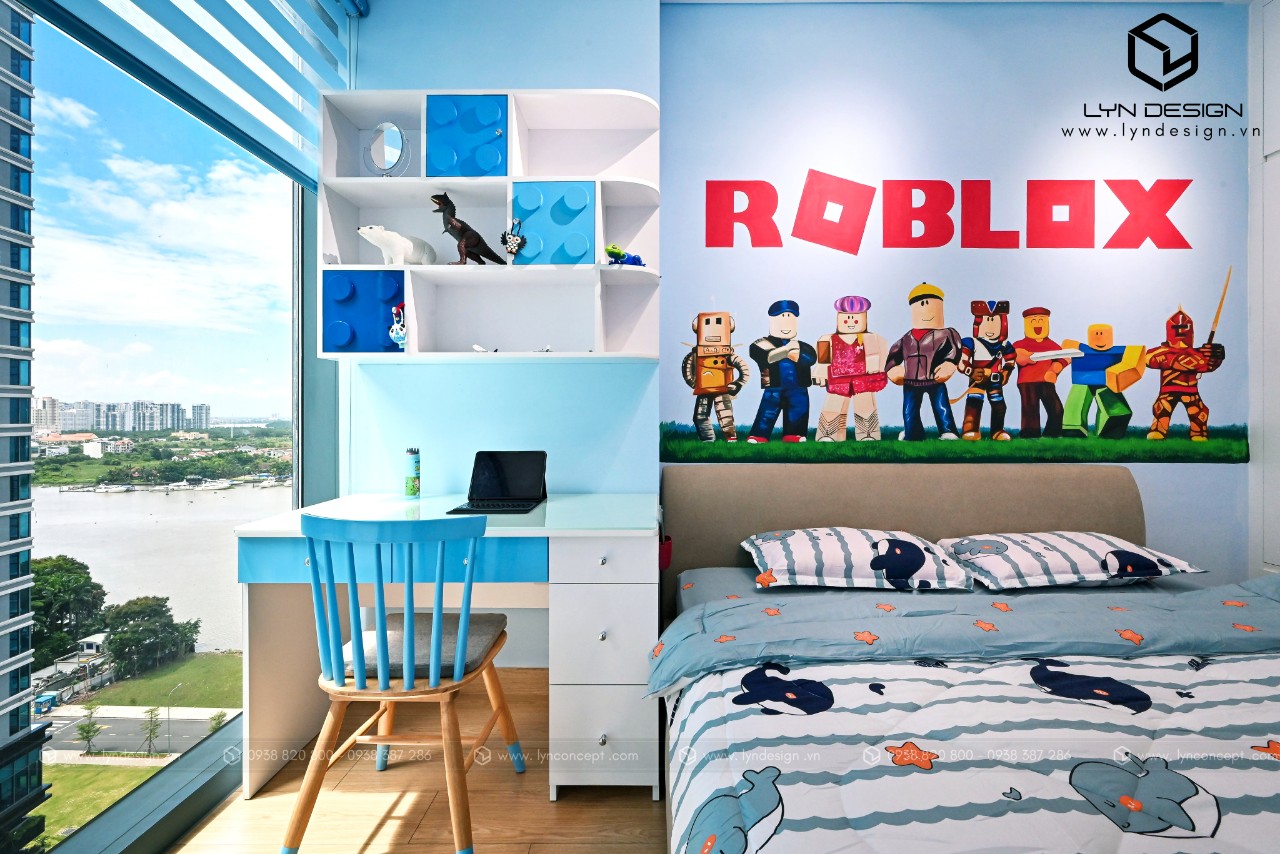 Thiết kế phòng ngủ cho bé trai theo phong cách hoạt họa bắt mắt. Gam màu xanh làm cho ta cảm giác rất là dễ chịu, và làm sáng hẳn lên căn phòng ngủ. Tạo ra một không gian thoáng mát giúp bé học hành và vui chơi thoải mái hơn.