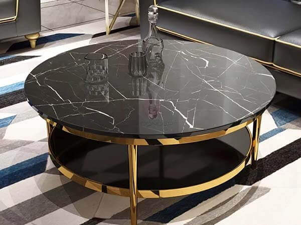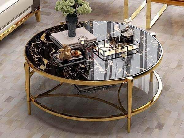 Bàn Trà Tròn Mặt Đá Đen 2 Tầng Chân Inox Mạ Vàng Cao Cấp - BT02A (Link Sản Phẩm)