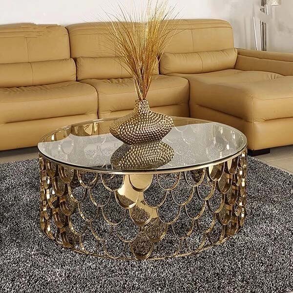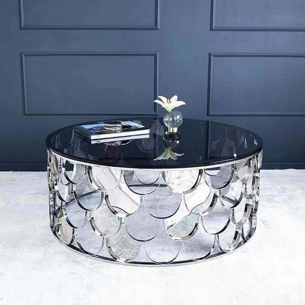 Bàn Trà Sofa Tròn Mặt Kính Trong Chân Inox Cắt Cnc Hình Vảy Cá Mạ Pvd Cao Cấp - BT64A (Link Sản Phẩm)