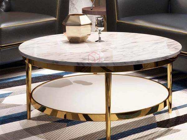 Bàn Trà Tròn Mặt Đá Trắng 2 Tầng Chân Inox Mạ Vàng Cao Cấp (Link Sản Phẩm)