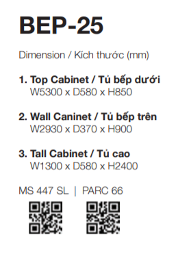 - Giá để dao thớt, kệ gia vị, khay úp chén, giá để xoong nồi, tủ đồ khô chưa bao gồm
