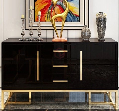 Tủ Console với thiết kế chân inox mạ vàng toát lên vẻ sang trọng, quý phái [link xem chi tiết sản phẩm]