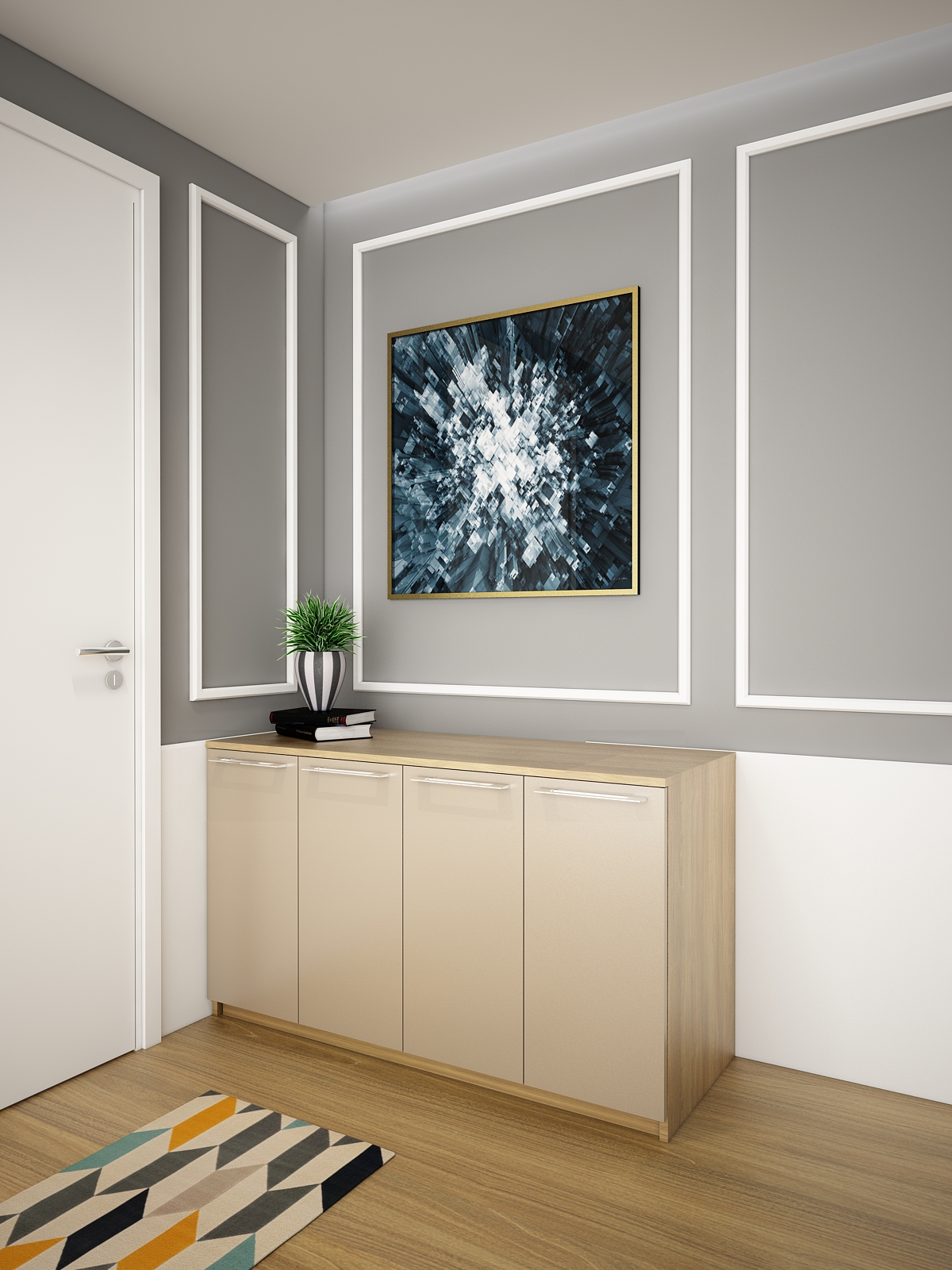 - Vật liệu: Gỗ công nghiệp MFC hoặc MDF phủ Melamine An Cường