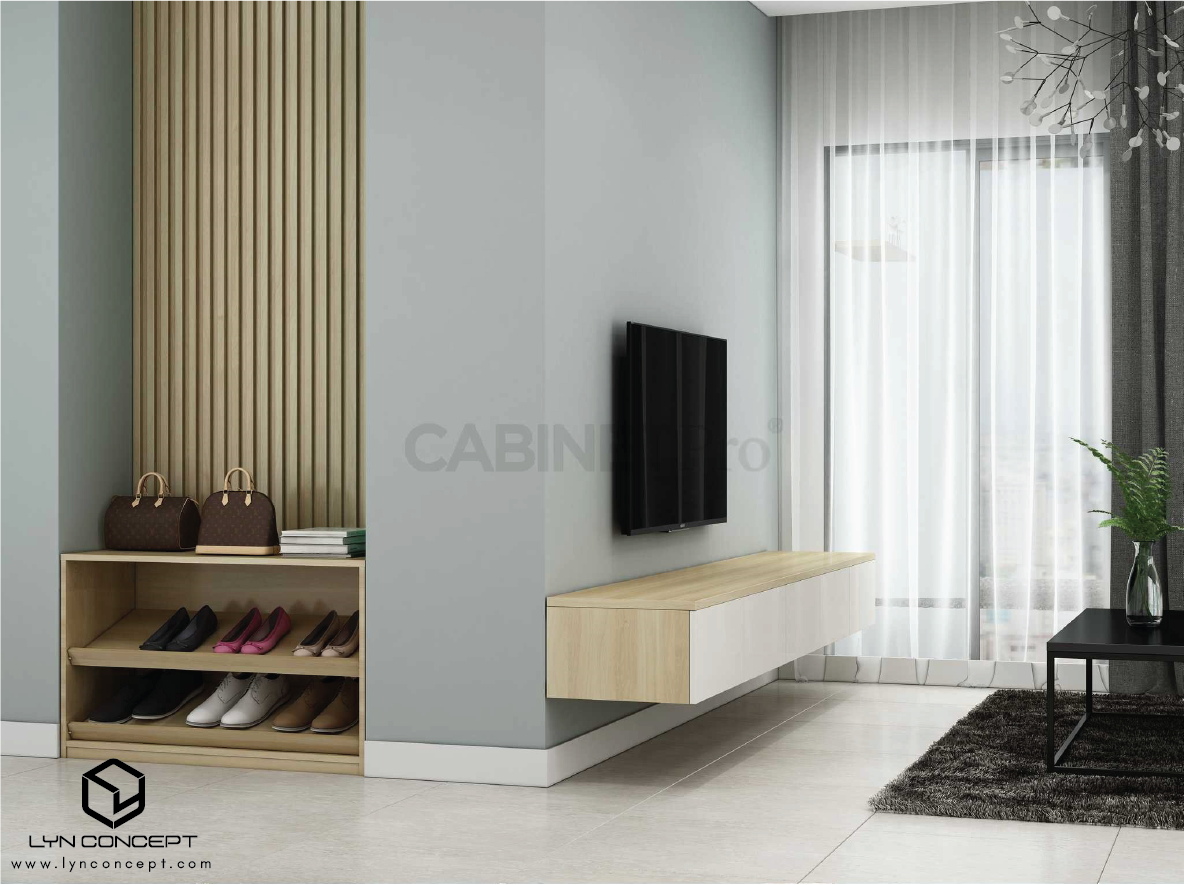 - Kích thước tủ giày: tùy theo kích thước phòng khách