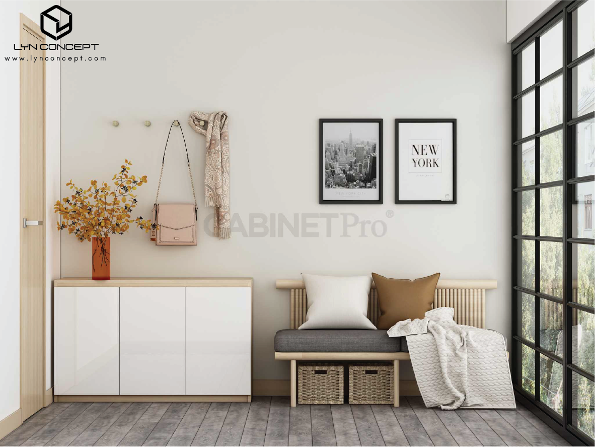 - Kích thước tủ giày: tùy theo kích thước phòng khách