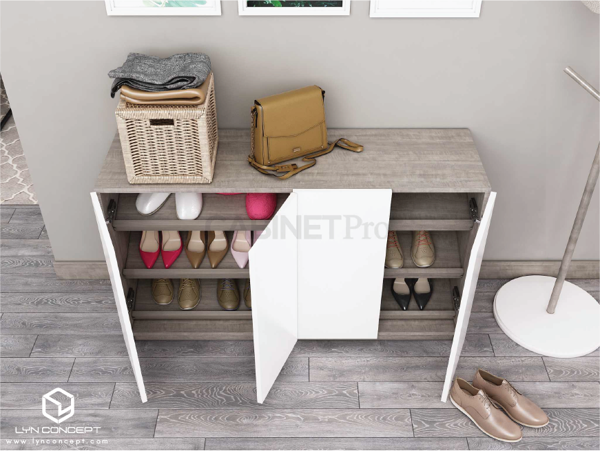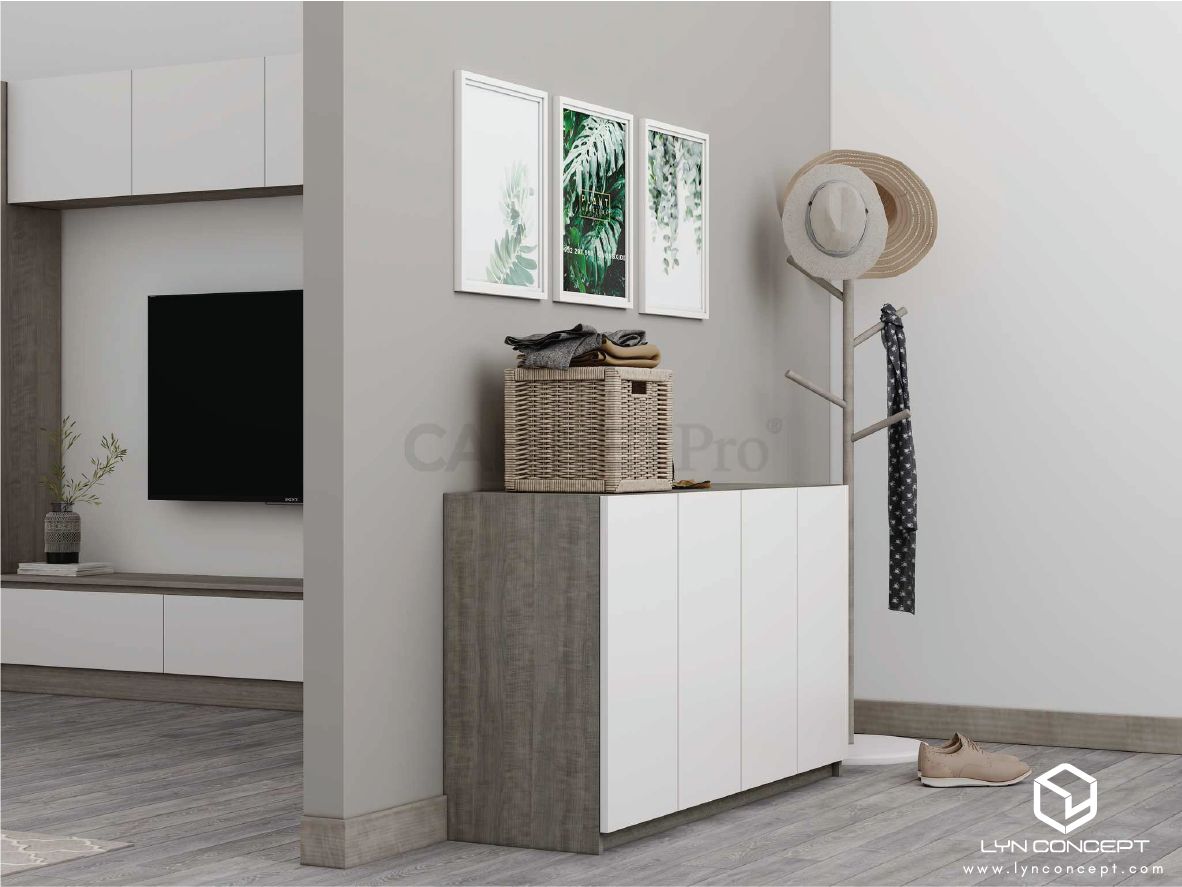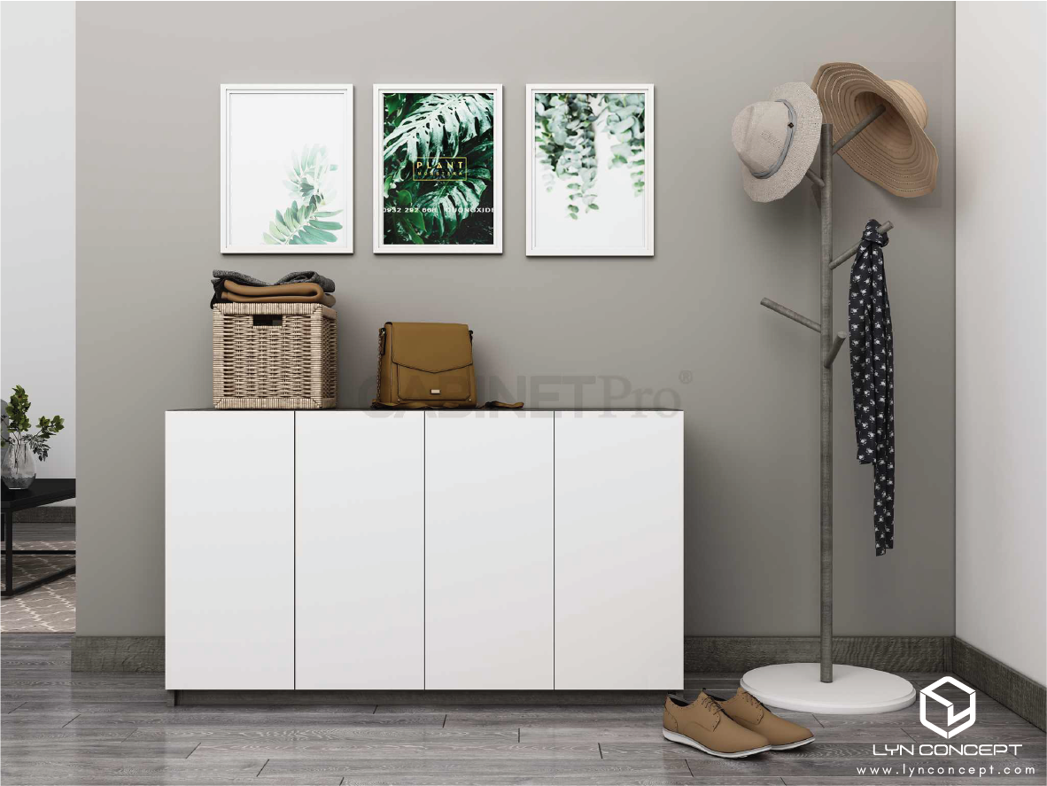 - Kích thước tủ giày: tùy theo kích thước phòng khách