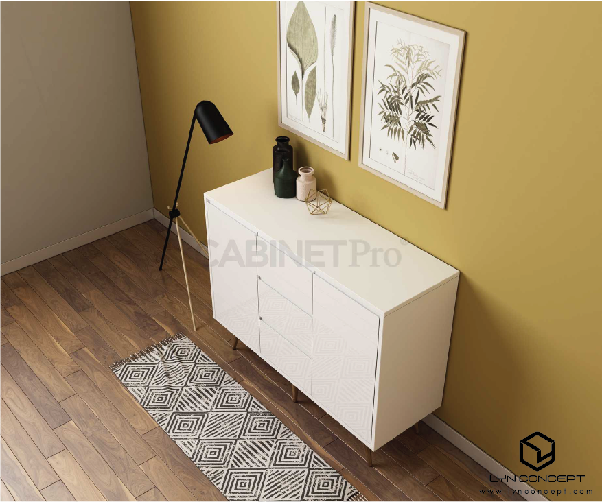 + Phụ kiện miễn phí đi kèm tủ trang trí: bản lề giảm chấn, ray bi trượt 3 tầng, tay nắm, pít tông hơi…