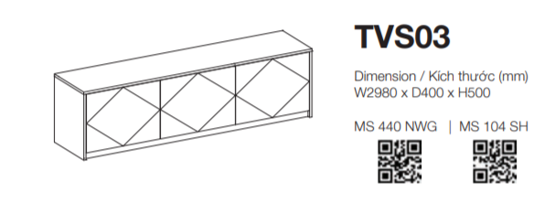 - Kích thước tủ tivi: W2980 x D400 x H500 (mm)