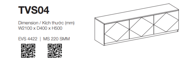 - Kích thước tủ tivi: W2100 x D400 x H500 (mm)
