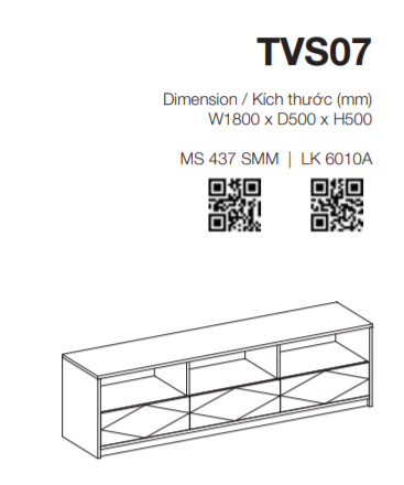 - Kích thước tủ tivi: W1800 x D500 x H500 (mm)