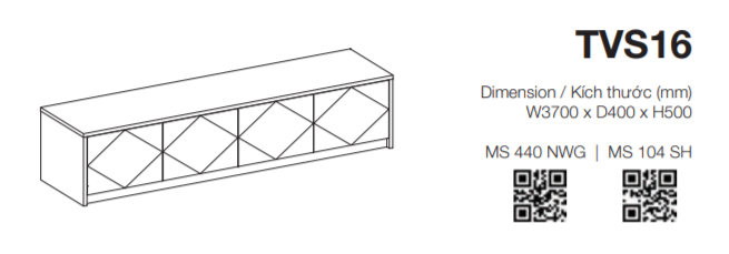 - Kích thước tủ tivi: W3700 x D400 x H500 (mm)