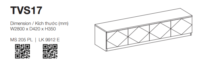 - Kích thước tủ tivi: W2800 x D420 x H350 (mm)