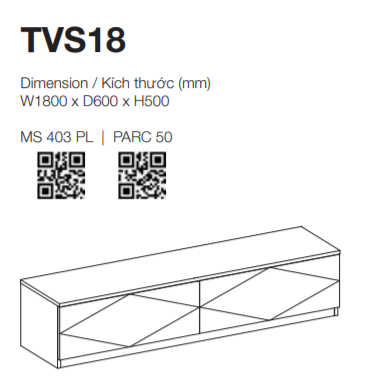 - Kích thước tủ tivi: W1800 x D600 x H500 (mm)