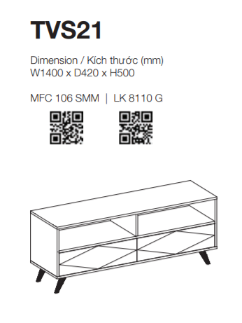 - Kích thước tủ tivi: W1400 x D420 x H500 (mm)