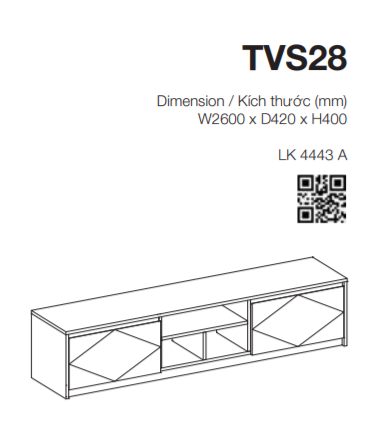 - Kích thước tủ tivi: W2600 x D420 x H400 (mm)
