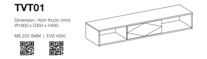 - Kích thước tủ tivi: W1600 x D350 x H400 (mm)
