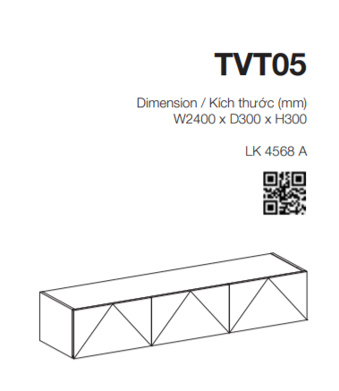 - Kích thước tủ tivi: W2400 x D300 x H300 (mm)